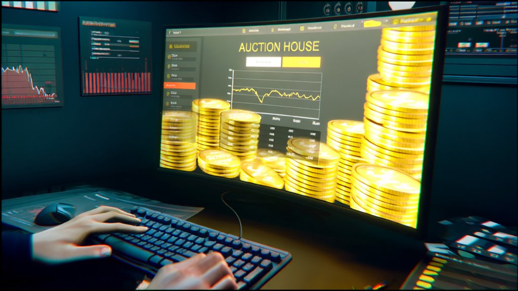 While mastering crafting and professions sets the foundation for wealth in World of Warcraft, the Auction House is where your efforts truly pay off. Understanding auction house dynamics is crucial. Start by analyzing market fluctuation patterns. It’s not just about listing items; it’s about timing and strategic pricing. Monitor high-demand commodities and rare items. Use add-ons to track prices and identify trends.